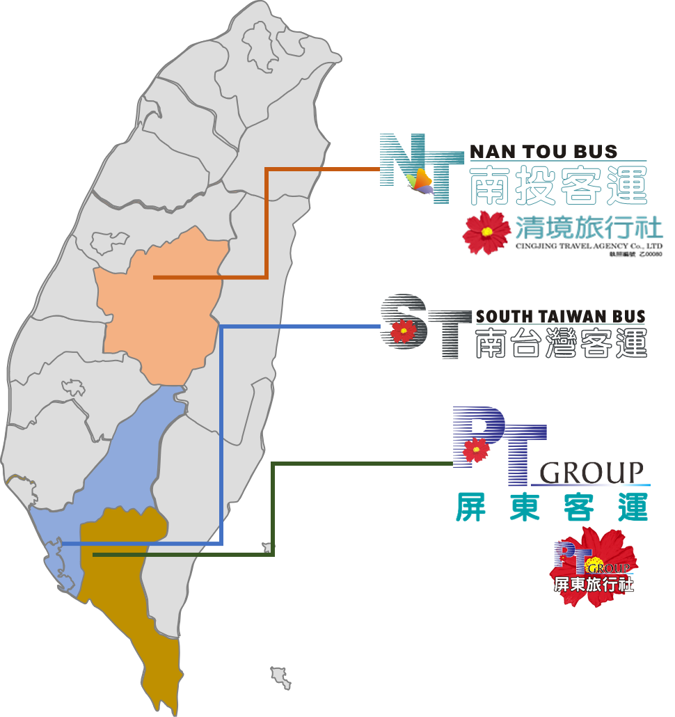 屏東客運集團主要營運範圍在中部(南投)、南部(高雄以及屏東)。